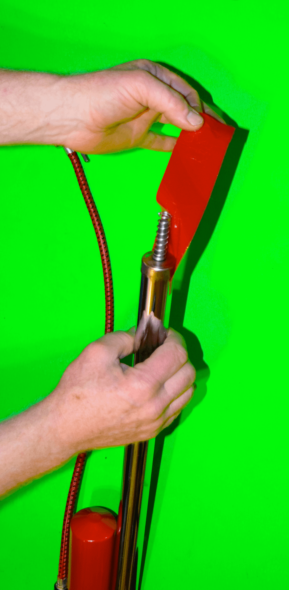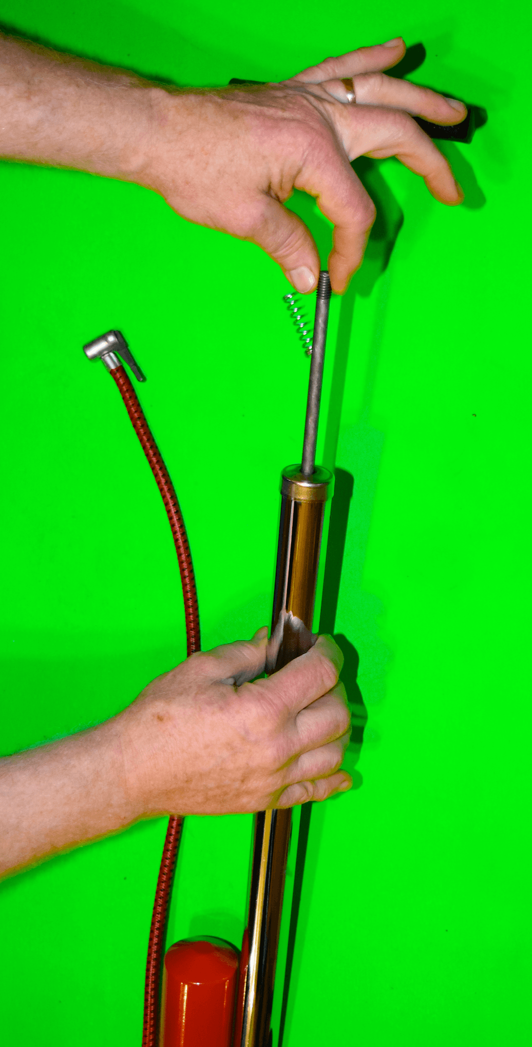 Then peel the tape off the end of the pump to reveal the spring. ↓