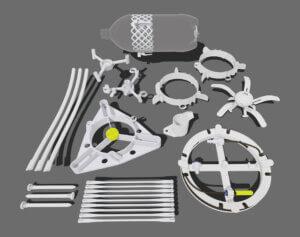 Comes with nozzles & safety pressure relief valve, booster bottle, ring fins, spin liftoff platform, spinning lander payload, 20-foot-long launcher hose, windup reel, 50ml measuring cup. It’s very easy to assemble in less than 7 minutes; everything clicks together like it should.
