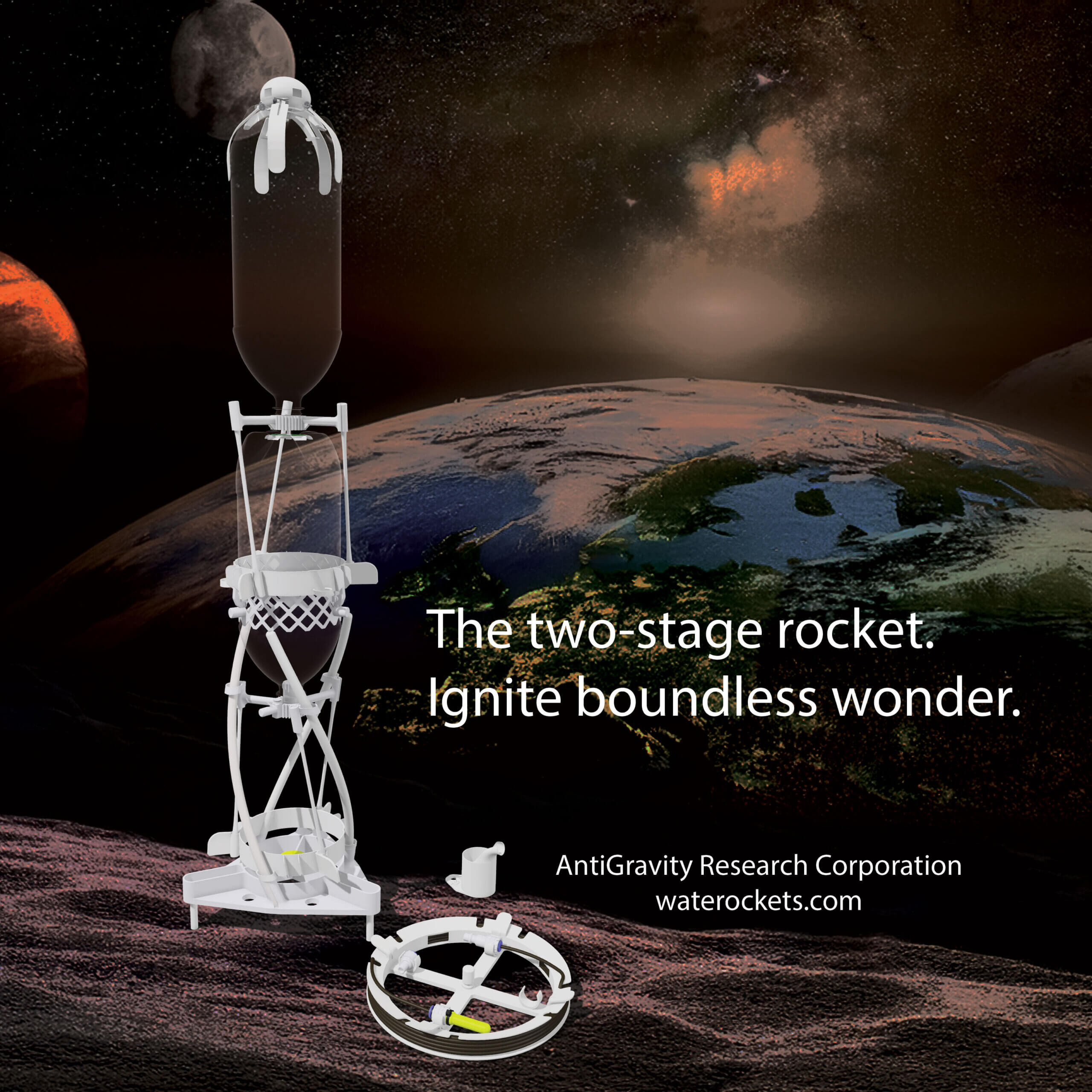 Later, you can add to your rocket by getting a third stage. All AntiGravity rockets use the same launcher and spin platform.
