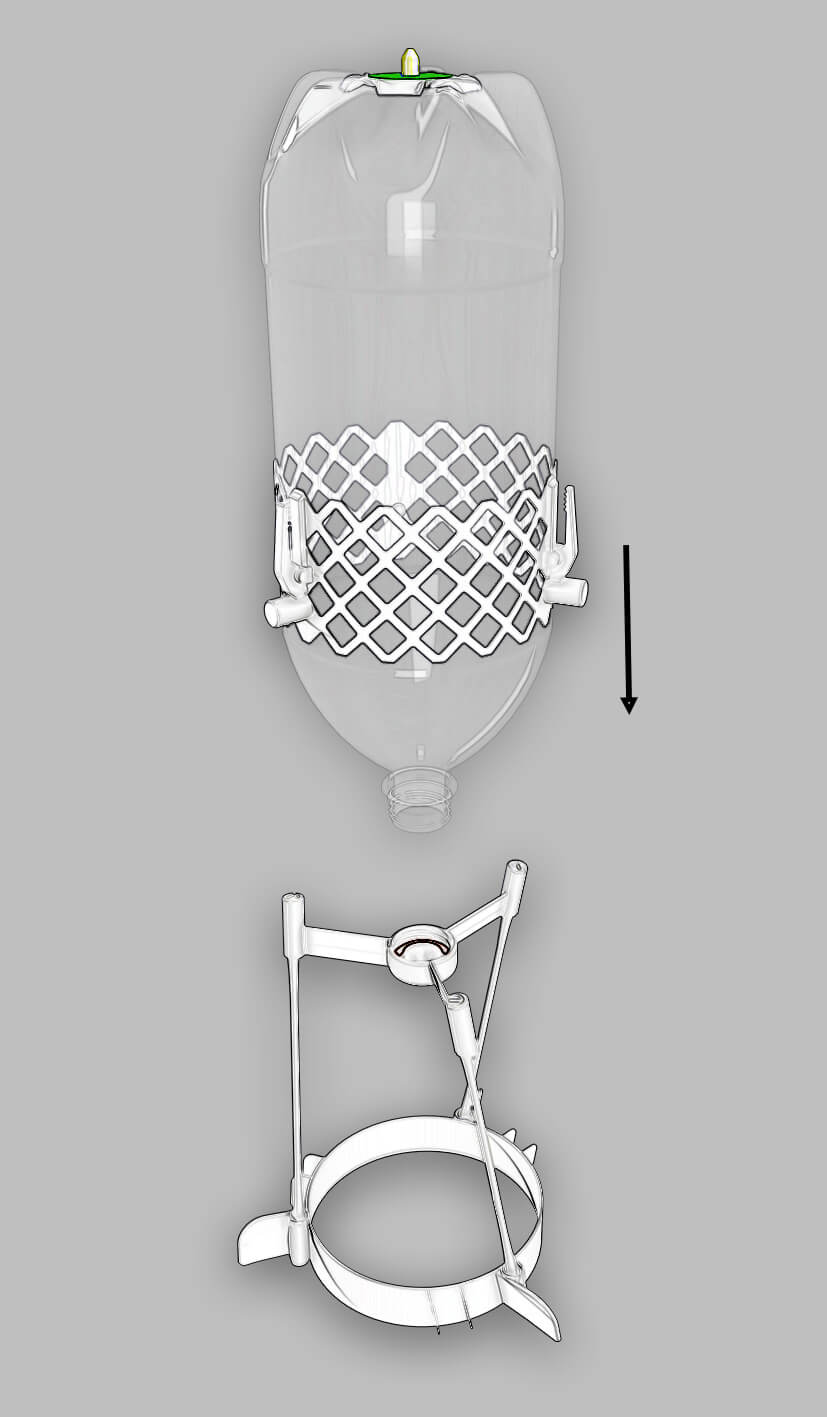 Thread the bottle with the GREEN top gently into the nozzle cap. Don't over-tighten.  Now the Mid Stage is done. Note that the 4-stage rocket has two of these mid stages.
