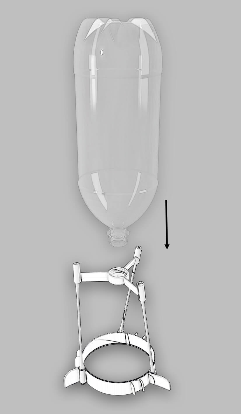 To finish the booster, thread a bottle gently into the nozzle cap (the bottle type will depend on whether you are making a 1-, 2-, 3- or 4-stage rocket, as in the following list). Don't over-tighten. With the 4-stage kit you can also make a 3-, 2- or 1-stage. With the 3-stage kit you can also make a 2- or 1-stage. With a 2-stage kit you can also make a 1-stage.